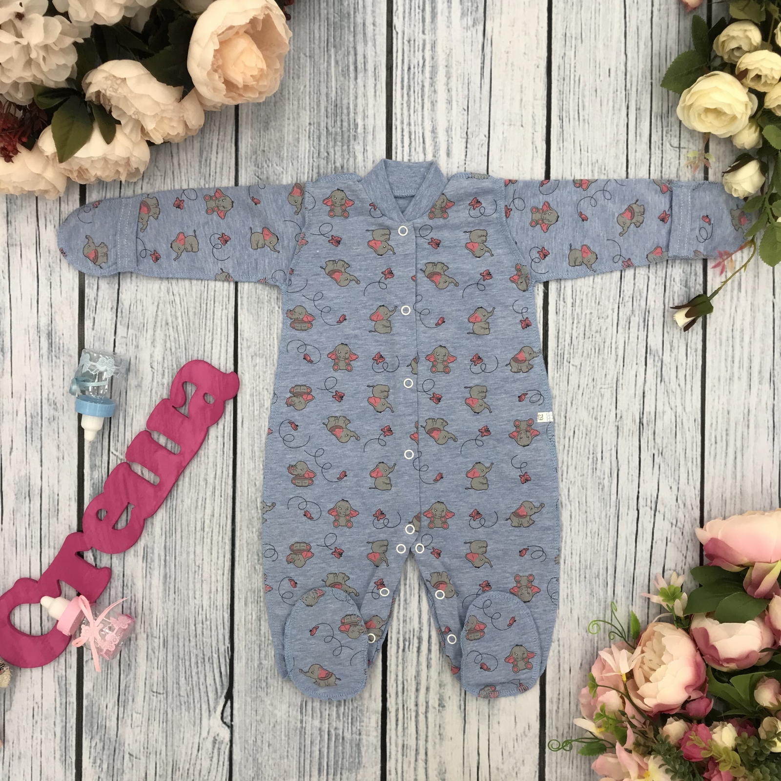 Теги: Купить оптом комбинезон с рисунком. 271-Г. Комбинезон, хлопок 100 % кулирка 56,62,68,74,80, голубой цена,отзывы официальный сайт "Стеша Ярославль"