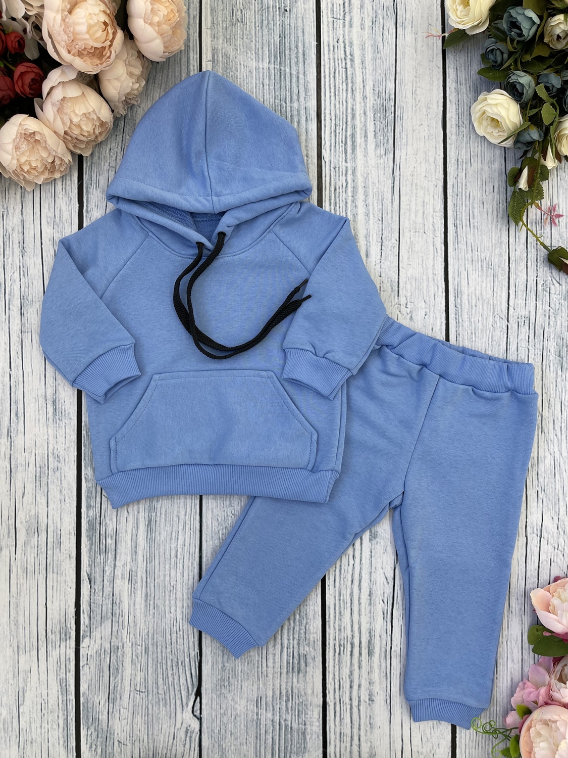 311-Г. Свитшот с капюшоном + Штаны, хлопок 65%, 35% ПЭ, 3-х нитка ( без начеса) голубой 122,128,134,140
