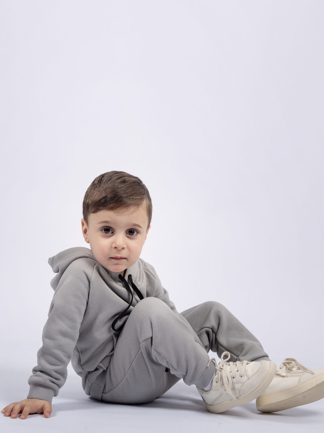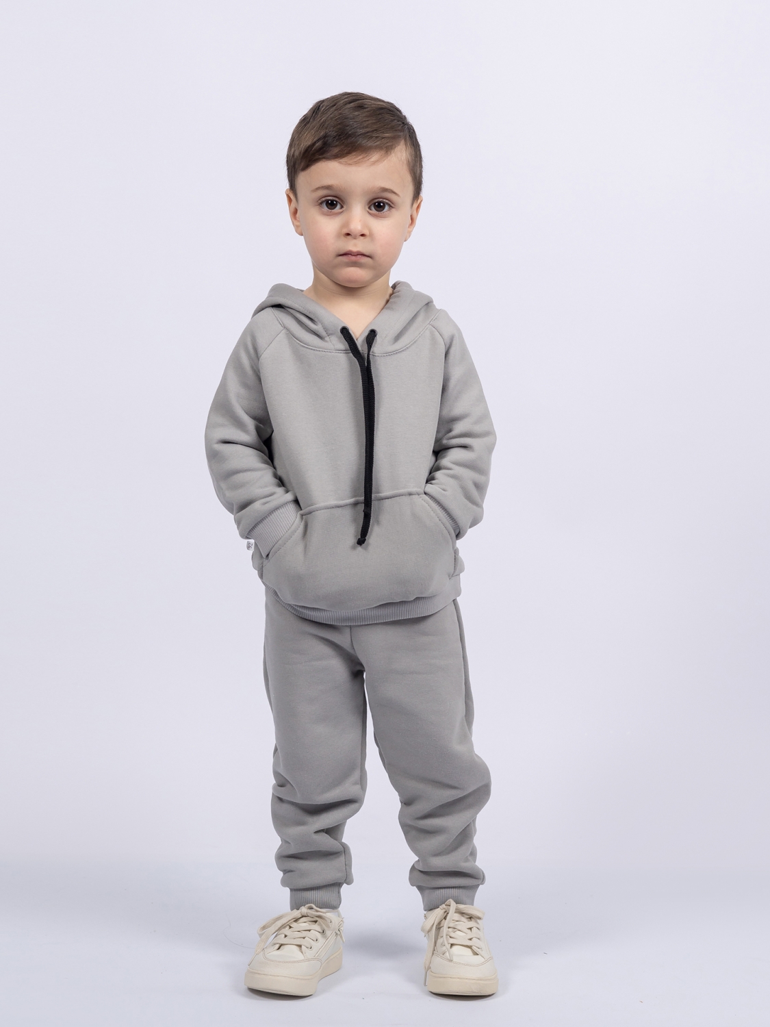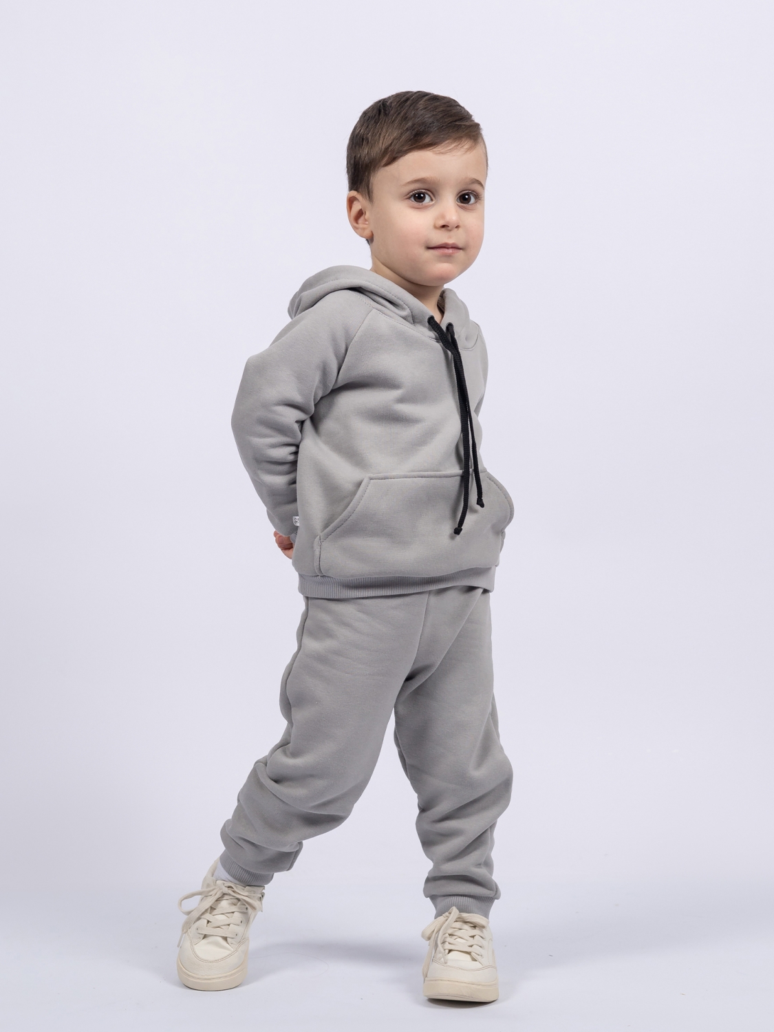 Теги: Детские костюмы оптом от производителя. 311-ГР. Свитшот с капюшоном + Штаны, хлопок 65%, 35% ПЭ, 3-х нитка ( без начеса) графит 80,86,92 цена,отзывы официальный сайт "Стеша Ярославль"