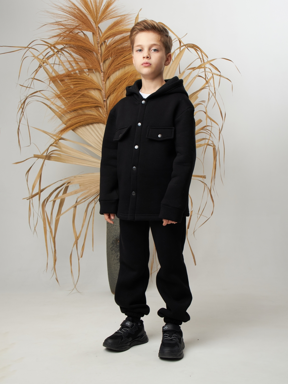 333. Костюм детский (Брюки+Толстовка) на кнопках, черный, хлопок 65%, 35% ПЭ, 3-х нитка с начесом 122,128,134,140
