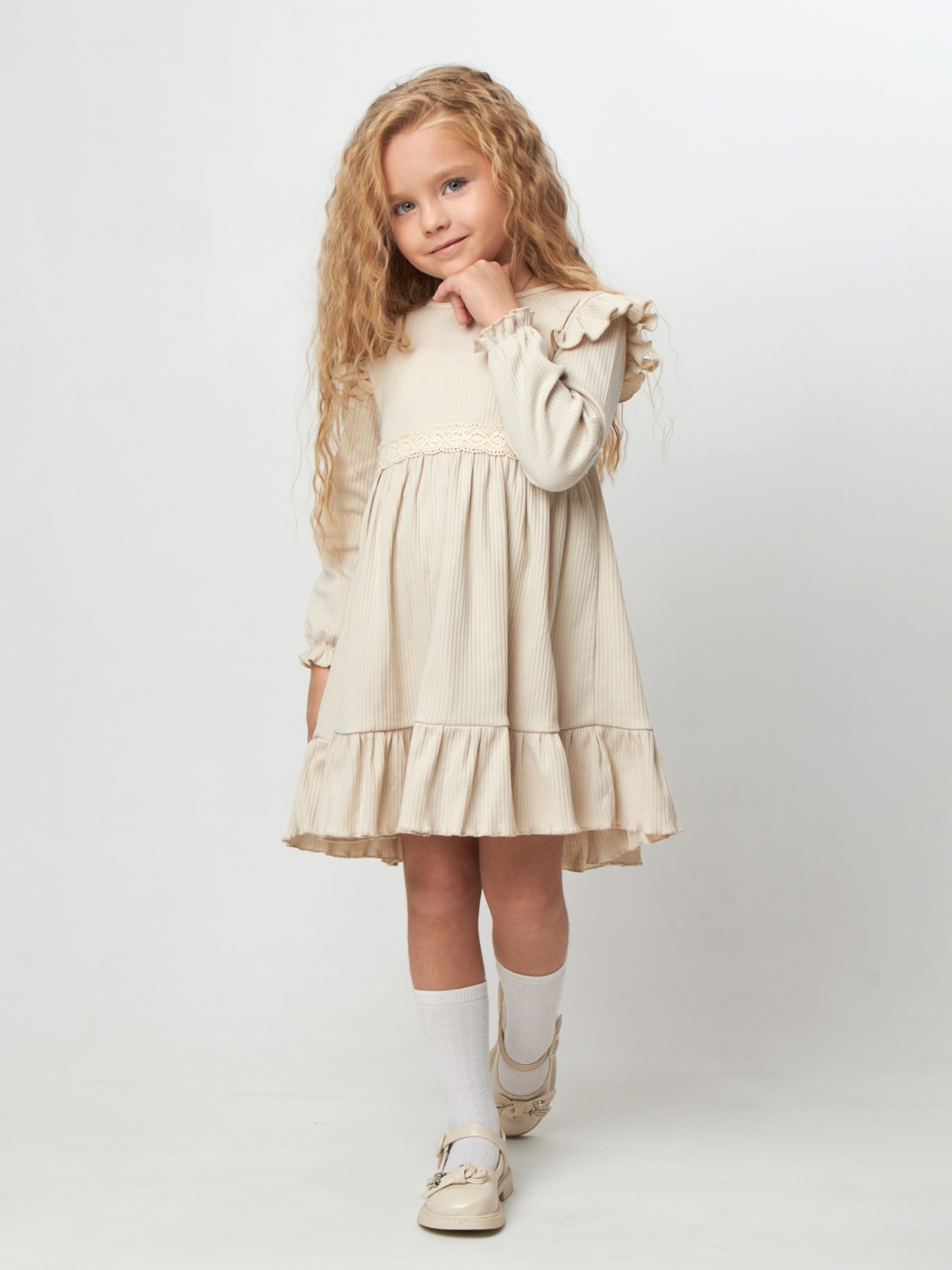 Теги: Платья детские из мулина оптом. 332. Платье детское из лапши, хлопок 100%, бежевое, р. 98,104,110,116 цена,отзывы официальный сайт "Стеша Ярославль"